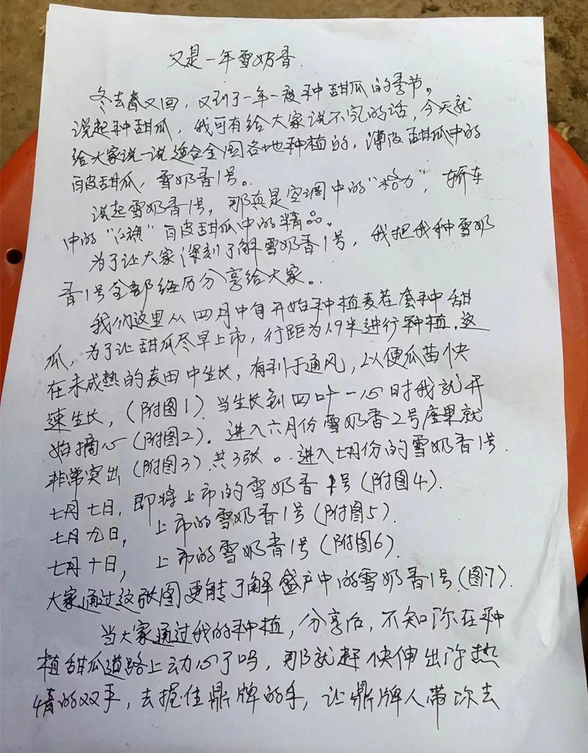 李老板是一位很務(wù)實(shí)、很勤奮的人,去年和今年都在麥田套栽了甜瓜,效益不錯(cuò)。今年參加了鼎牌公司的“拍拍獎(jiǎng)”活動(dòng),看他認(rèn)真書寫的稿件就讓人敬佩。