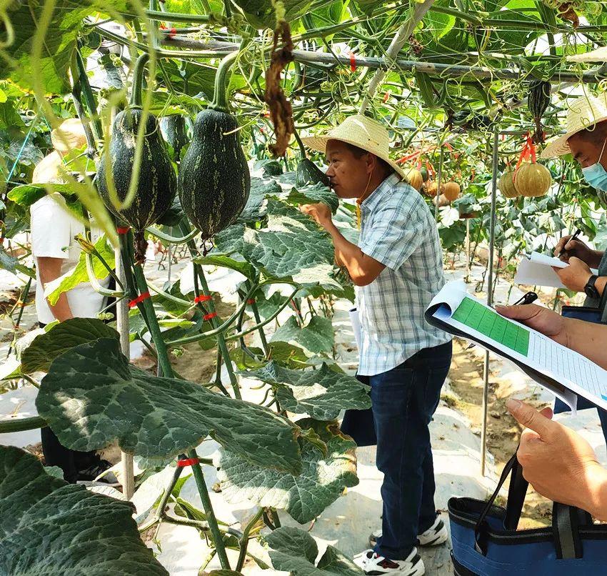 由于每個品類只能評選出1-2個品種,成為“專家推薦品種”,所以,初選后又進(jìn)行一輪復(fù)評。復(fù)評時(shí)已臨近中午,棚內(nèi)溫度接近40℃,每位都是汗流浹背,特別是福建省農(nóng)業(yè)科學(xué)院研究員李大忠個子又高,老是頭撞棚架,但還是彎著腰認(rèn)真觀察每一個品種,認(rèn)真做好每一個品種的記錄;湖南省農(nóng)科院蔬菜研究所研究員胡新軍為了確定一個南瓜推薦品種,在大棚內(nèi)反復(fù)來回,比較又比較,真是認(rèn)真又細(xì)心。他們這種負(fù)責(zé)的工作精神,讓筆者感動!