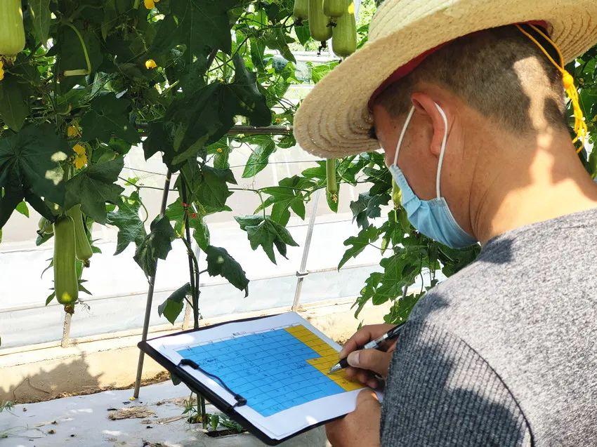 3位專家有條不紊,先后對苦瓜、絲瓜、南瓜進(jìn)行了初評。在評選中,經(jīng)常展開討論,各抒己見。在遇到表現(xiàn)好的品種時(shí),還忍不住拍照和記錄。